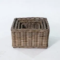 Kiyu Rectangle Basket – Natural Rattan Kubu Handwoven Storage for Home Decoration